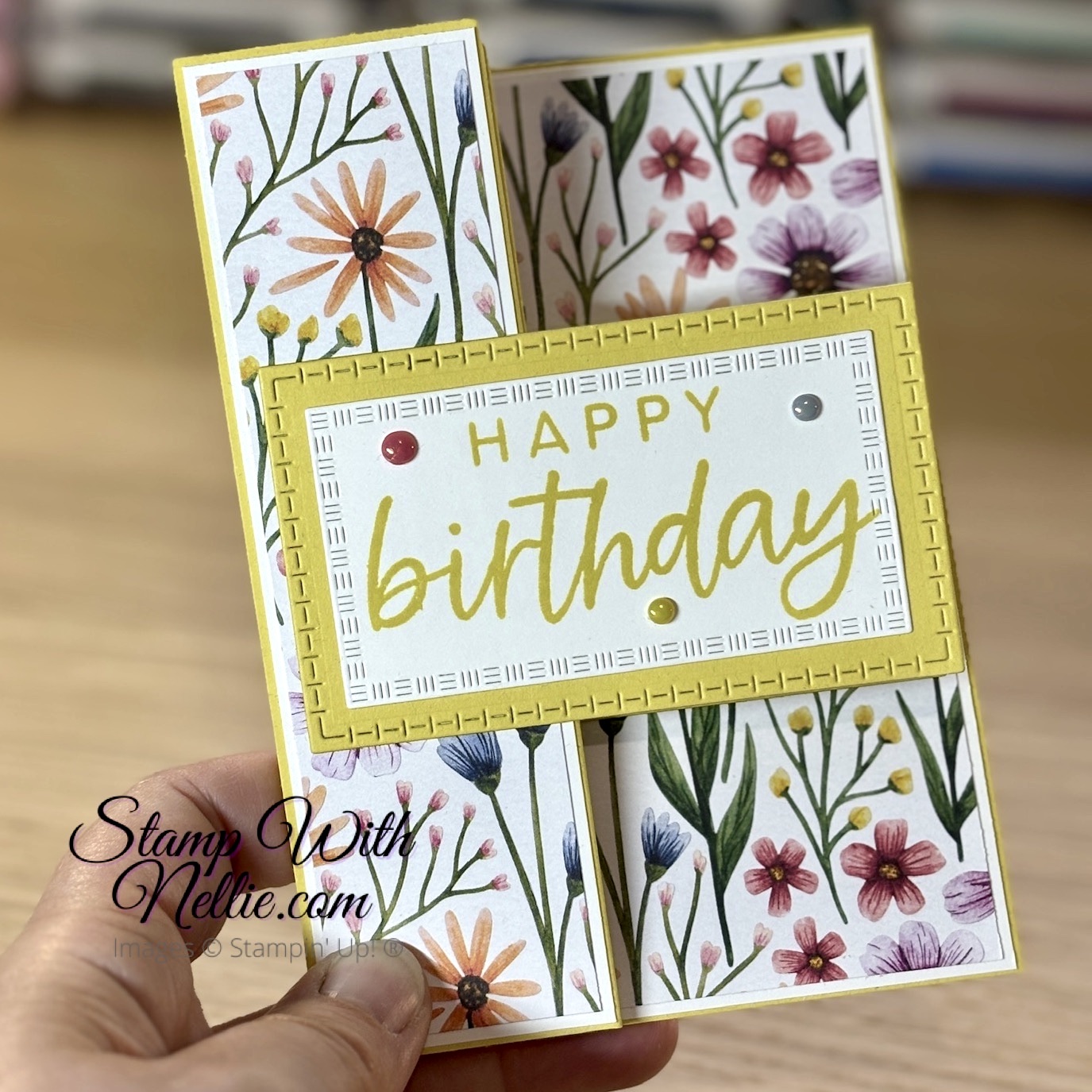 Again, I used the stunning Floral Impressions designer series paper for today’s fun fold card. The sentiments are from With You In Mind and the dies I used are from Textured Notes. You can buy the stamp set and dies right now but the In Colors and Floral Impressions DSP will be available from 6 May 2025 – not too long to wait now!
