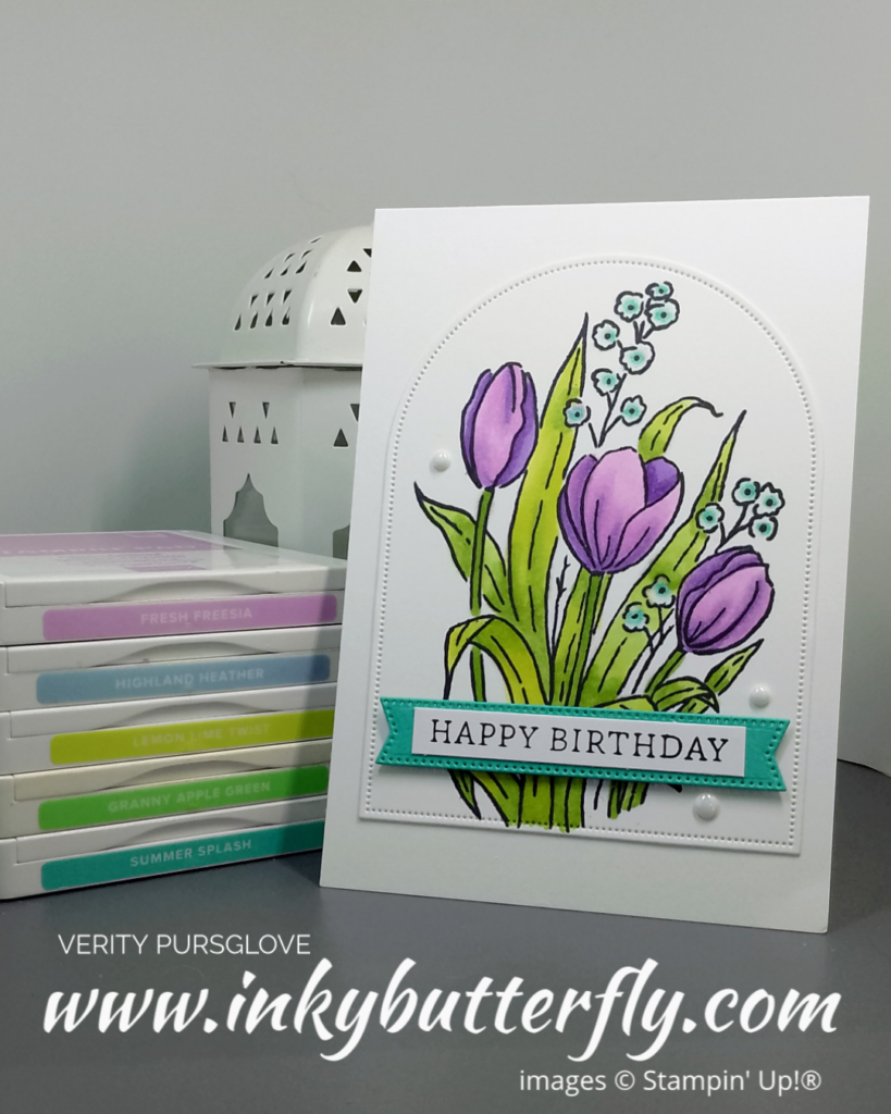 That beautiful floral image is fabulously coloured and perfectly framed by that arch die. And as usual, Verity has another version to share with you too. Please CLICK HERE to visit her blog and watch her video tutorial.