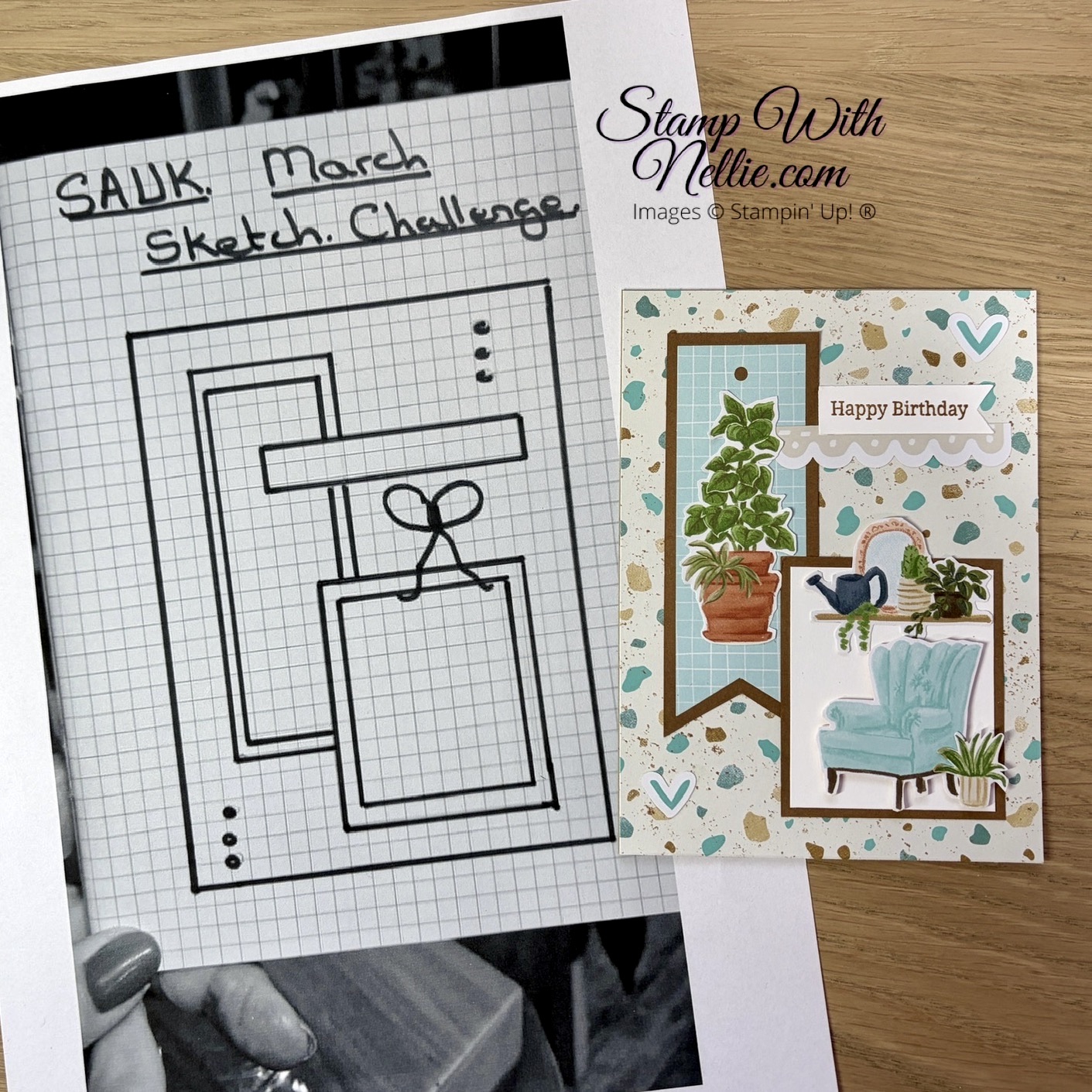 Hello! Today I’m taking part in the Stamp Around UK video hop over on YouTube, with a fabulous group of other UK based Stampin’ Up! independent demonstrators. Our theme for this month is a sketch challenge. The Sketch was created by Karen of TilleyKrafts and I decided to use it to create a Hobby Haven card…